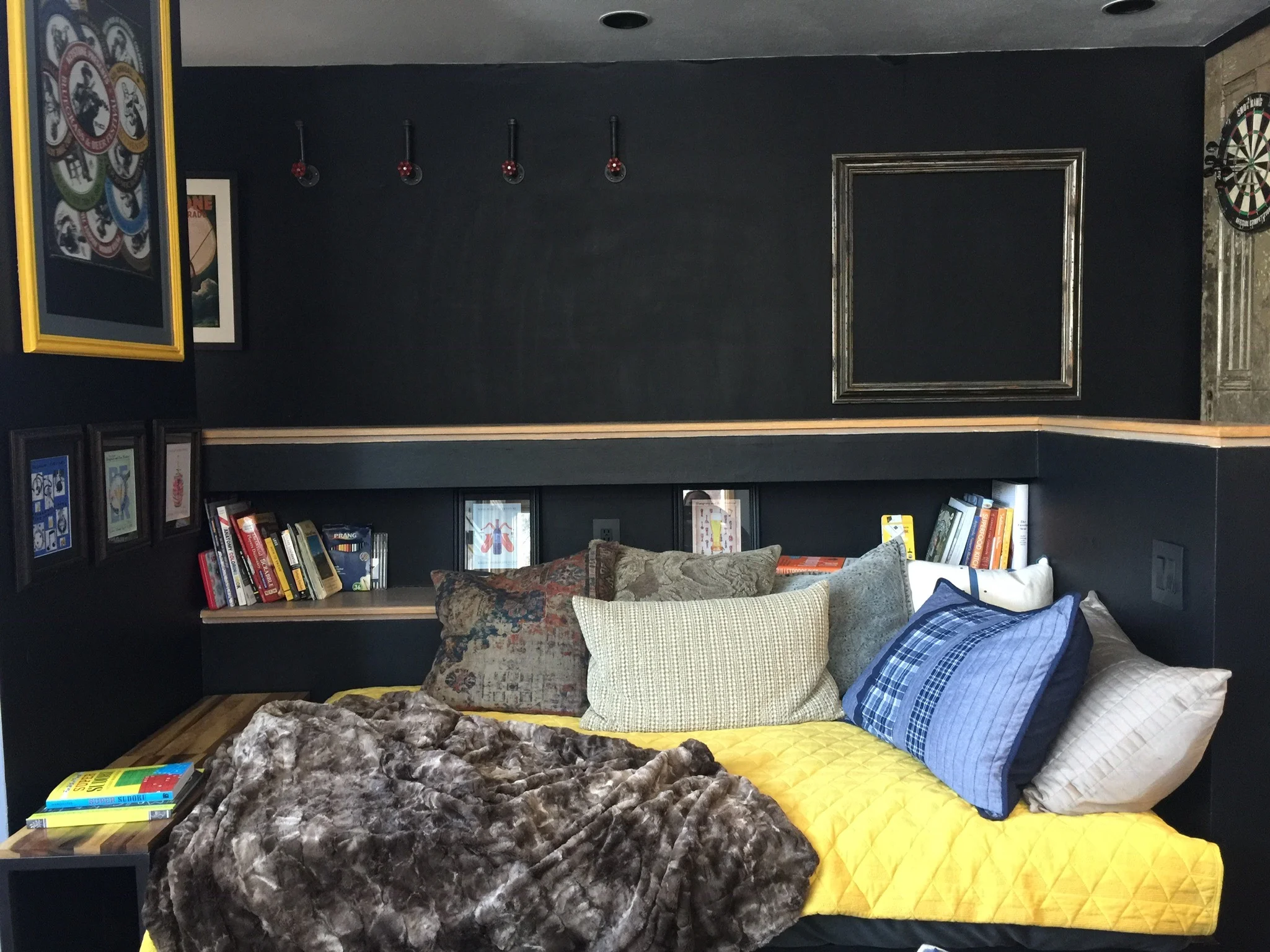 Let yourself be embraced by the queen and twin platform beds designed to offer you the comfort of curling up with a good book or snuggling with someone special. The twin faces the fireplace and flatscreen TV so you can snooze or just stretch out. Blankets abound so you will always be snug and cozy. This spot is also perfect for cheering on that game of Darts!